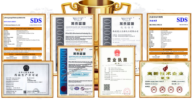 Xi'an Deli Biochemical Industry Co., Ltd. är ett högteknologiskt företag som specialiserat sig på FoU, produktion och försäljning av cyklodextriner och deras derivat. Vi levererar farmaceutiska hjälpämnen till kunder över hela världen med stabil kvalitet och pålitlig service.