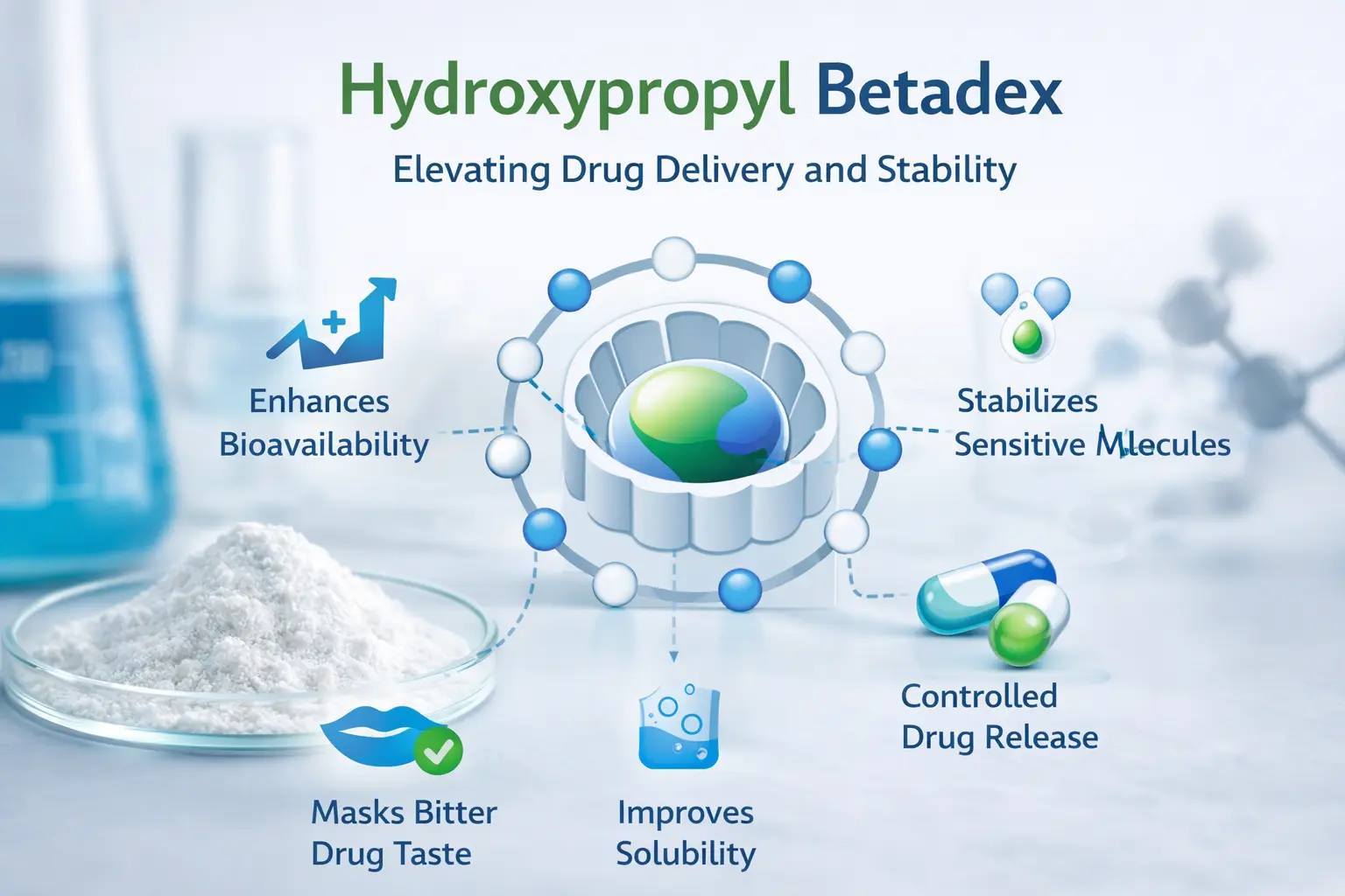 Hydroxipropyl Betadexär en revolutionerande medicinsk ingrediens som förvandlar läkemedel som inte löser sig bra till formuleringar som fungerar mycket bra. Det finns många fantastiska saker med detta förändrade cyklodextrinderivat, såsom bättre läkemedelslöslighet, bättre biotillgänglighet och bättre stabilitet. Molekylär kapselteknologi gör stabila inklusionskomplex som tar sig runt problem som kommer med andra formuleringar. Forskare inom läkemedelsindustrin över hela världen använder denna flexibla polymerbärare för att förbättra läkemedelstillförselmetoder, minska toxiciteten och få konsekventa terapeutiska resultat för både oral och injicerbar användning.